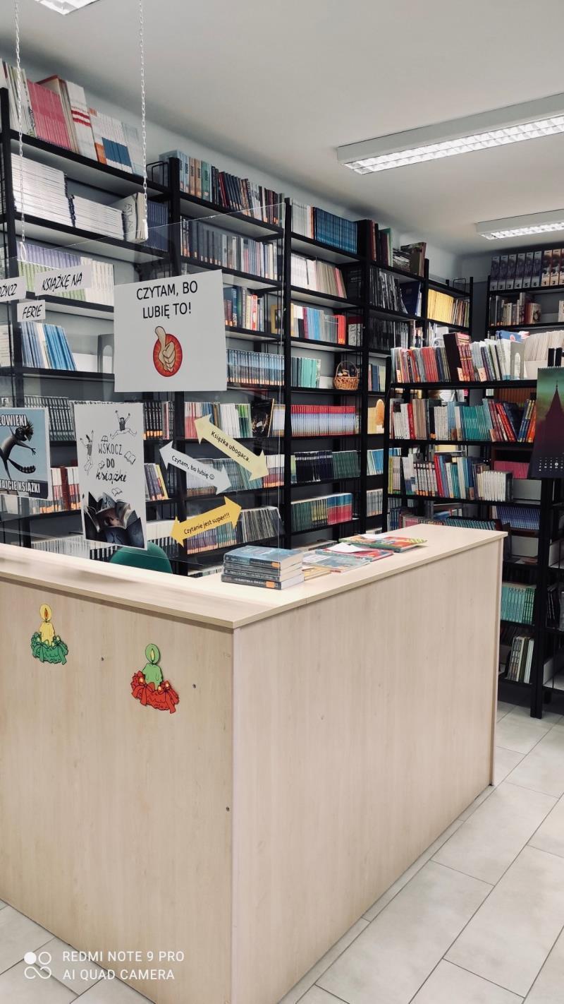 Biblioteka szkolna posiada bogaty księgozbiór doposażony w lektury i